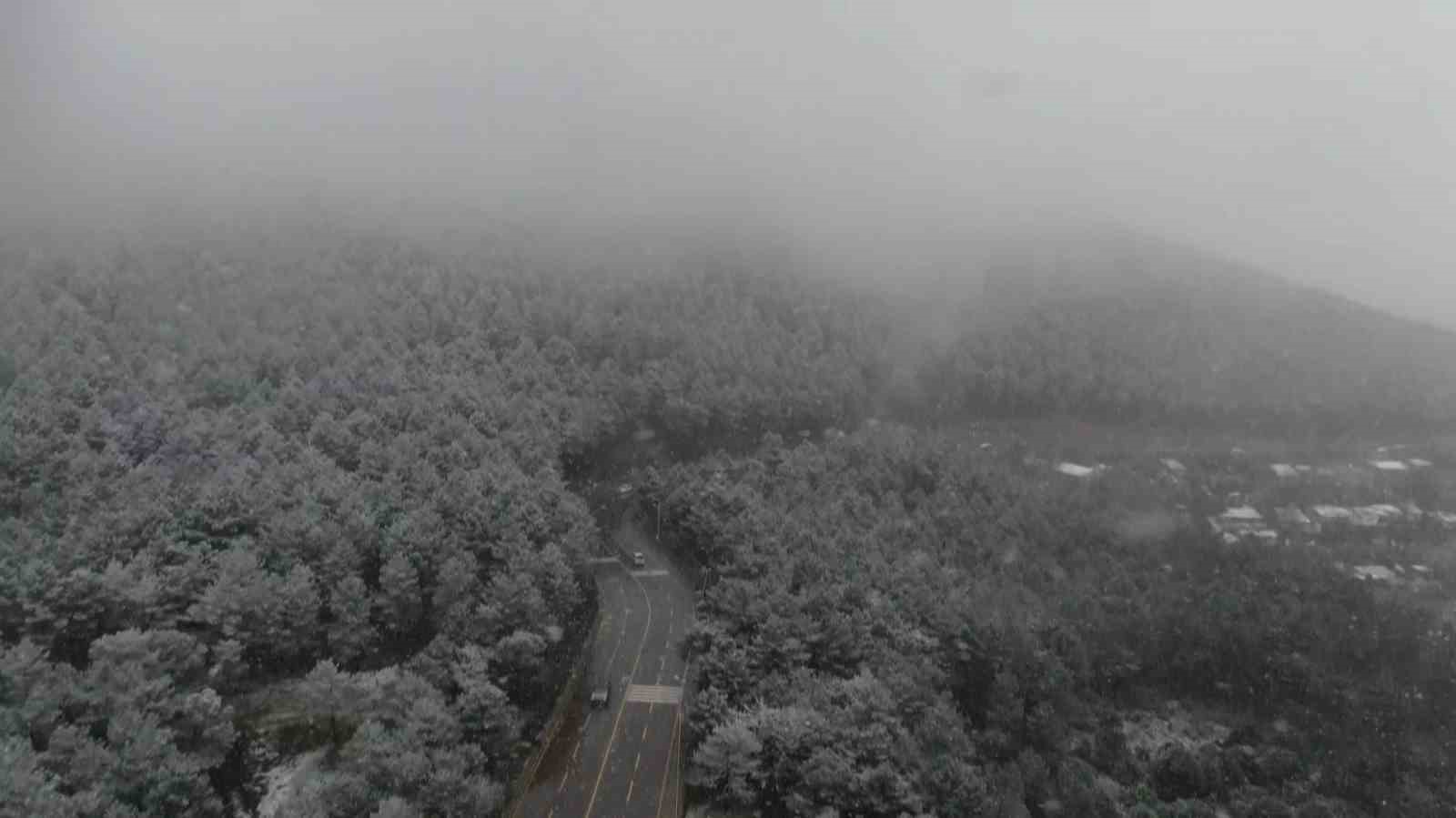 İstanbul’da beklenen kar yağışı sabah saatlerinden itibaren etkisini göstermeye devam ediyor. Kentin bazı bölgelerinde aralıklarla devam eden kar yağışı, özellikle yüksek kesimlerde beyaz örtü oluşturmaya başladı. Kent genelinde özellikle yüksek kesimlerde etkisini sürdüren kar yağışıyla birlikte Aydos ve çevresindeki ağaçlar ve yollar beyaza büründü. Bölgede kaydedilen görüntülerde kar yağışının aralıksız devam ettiği görülürken, dronla görüntülenen Aydos’un tamamının beyaz örtüyle kaplandığı dikkat çekti. Özellikle ormanlık alanda yoğunluğunu artıran karla birlikte kartpostallık manzaralar ortaya çıktı.