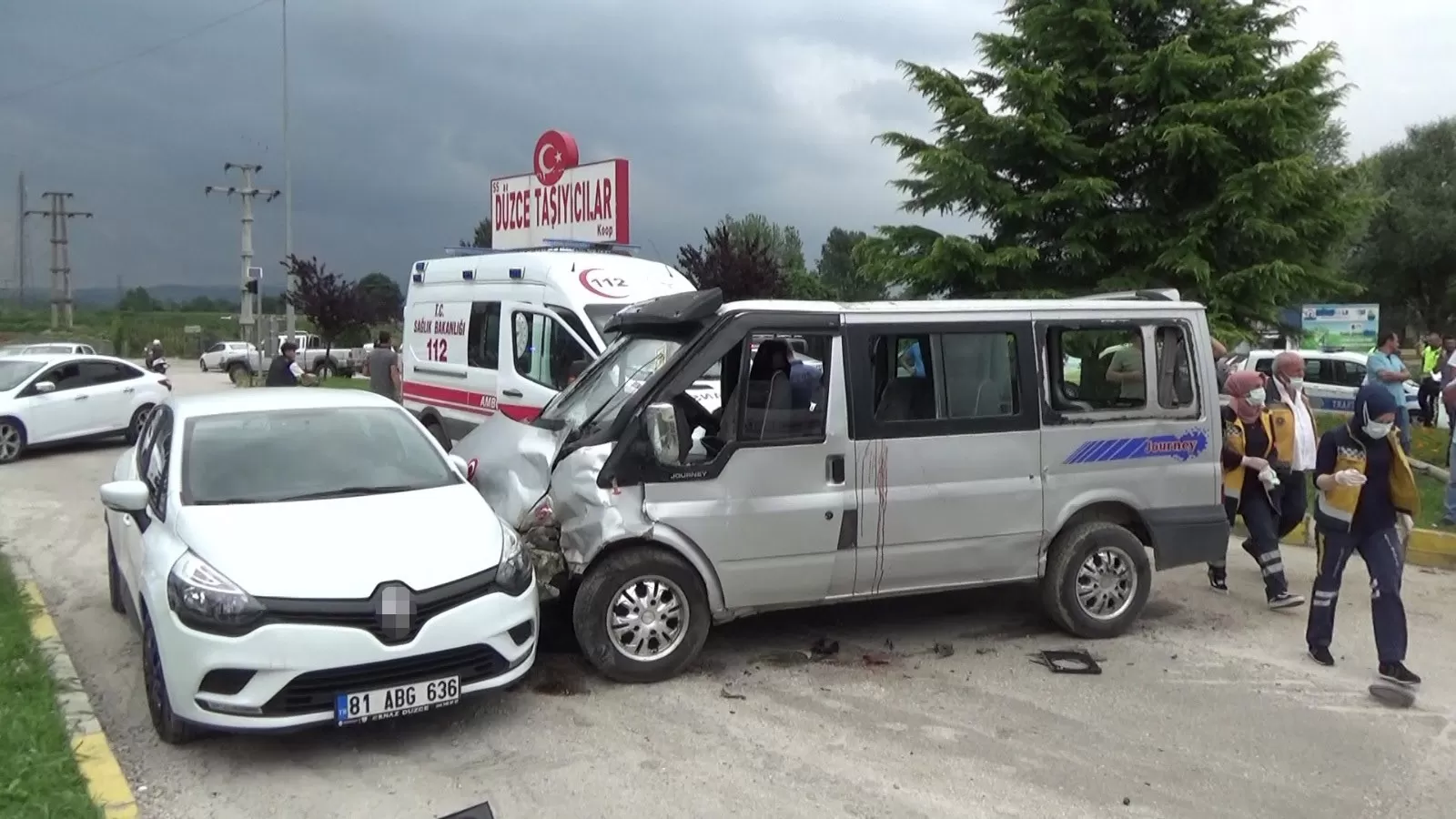 Kaza, D-100 Karayolu Hal Kavşağı mevkiinde meydana geldi. İddiaya göre, İ.Y. idaresindeki 54 AEZ 253 plakalı Ford marka minibüs, önce R.B. yönetimindeki 81 AAC 101 plakalı minibüse, ardından da G.A. hakimiyetindeki 81 ABG 636 plakalı otomobile çarptı. Kazada 3 aracın sürücüleri ve yolcular olmak üzere toplam 10 kişi yaralandı. Kazayı görenler 112 Acil Çağrı Merkezi’ne ihbarda bulundu. İhbar üzerine olay yerine sağlık, polis ve tedbir amaçlı itfaiye ekipleri sevk edildi. Yaralılar, sağlık ekiplerinin olay yerindeki müdahalelerinin ardından Atatürk Devlet Hastanesi’ne kaldırıldı. Kaza sebebiyle minibüste yolcu olarak bulunan genç şoka girdi. Genç kız, yolcular ve polis memuru tarafından sakinleştirilmeye çalışıldı.