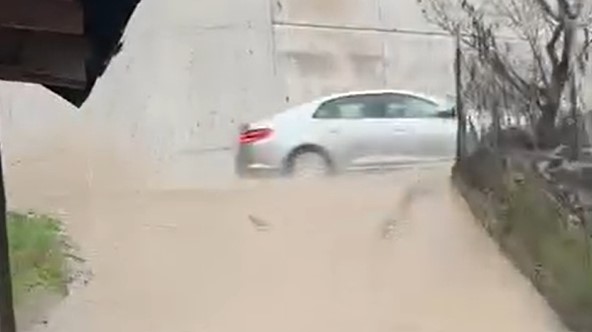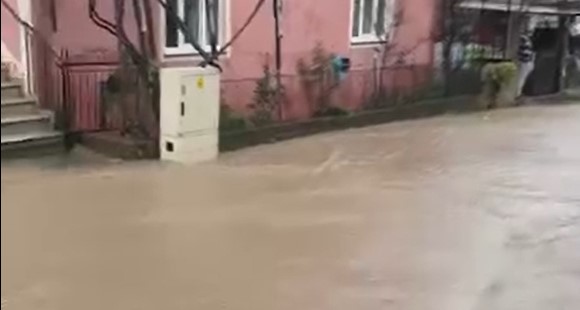 yağmur suları, sokağı adeta dereye çevirdi.