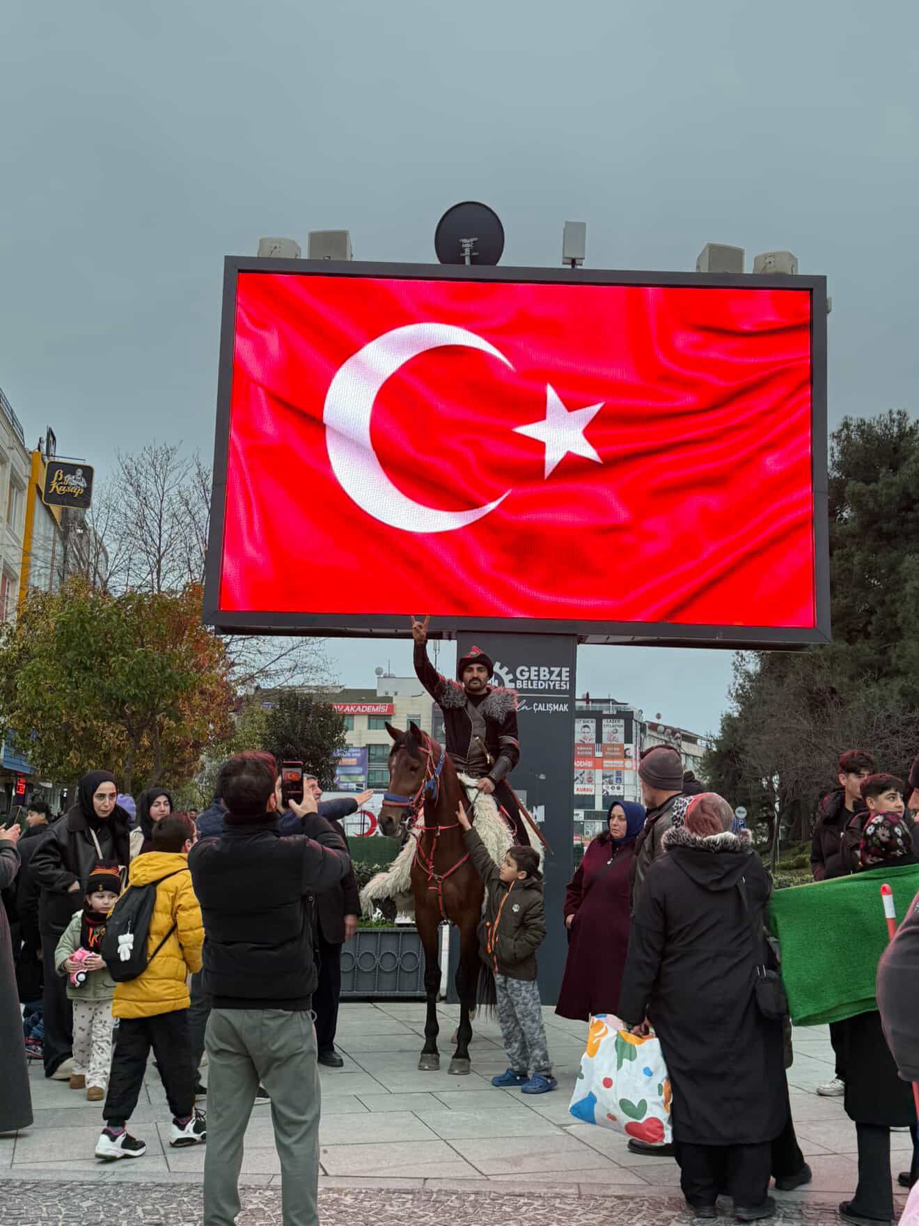 Summani Yılmaz, atıyla geldiği Gebze Kent Meydanı'nda vatandaşların büyük ilgisi ile karşılaştı. Türk Bayrağı önünde, at üstünde bozkurt işareti yapan Yılmaz'ı onlarca kişi görüntülemek için birbirleriyle yarıştı.