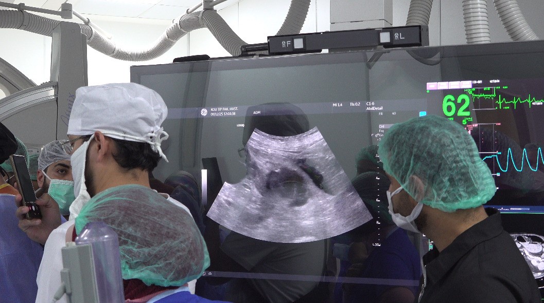 Girişimsel Radyoloji Bilim Dalı Öğretim Üyesi Doç. Dr. İsa Çam koordinesinde gerçekleşen etkinlik kapsamında, karaciğer, böbrek, tiroit ve paratiroit tümörlerinde uygulanan ve halk arasında "iğne ile yakma" olarak bilinen tedavi yöntemi, canlı vakalar eşliğinde katılımcılara gösterildi. Yaklaşık yarım saat süren operasyonla tümörün iğne deliğinden girilerek yakılması işlemi, yabancı hekimler tarafından ilgiyle takip edildi.